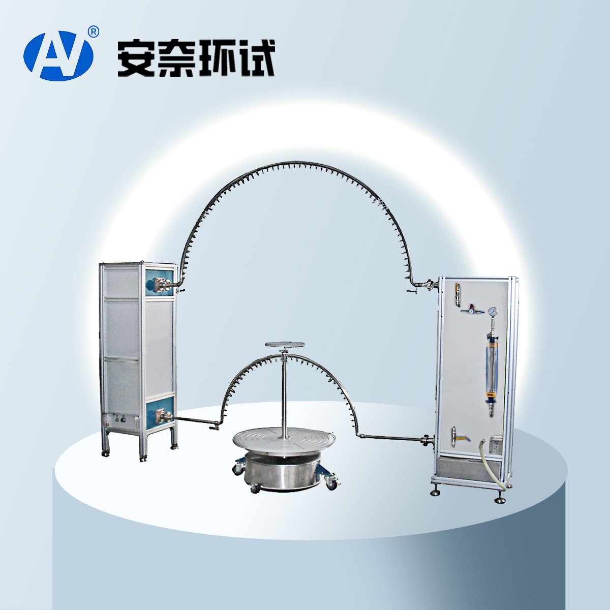 摆管淋雨试验装置可以用来考核和确定电工电子产品、防水材料外壳和密封性及电气设备外壳的防护(IP)等级鉴定,以及在水试验后或在试验期间能否保证设备材料和元件良好的工作性能、以及现在使用的有关道路车辆、外部照明和光信号装置环境耐久性试验。